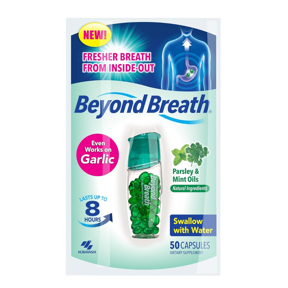 Breath Freshening Capsules – Fresher Breath From Inside-Out, Works on Garlic Breath, Lasts Up to 8 Hours (50 Capsules)