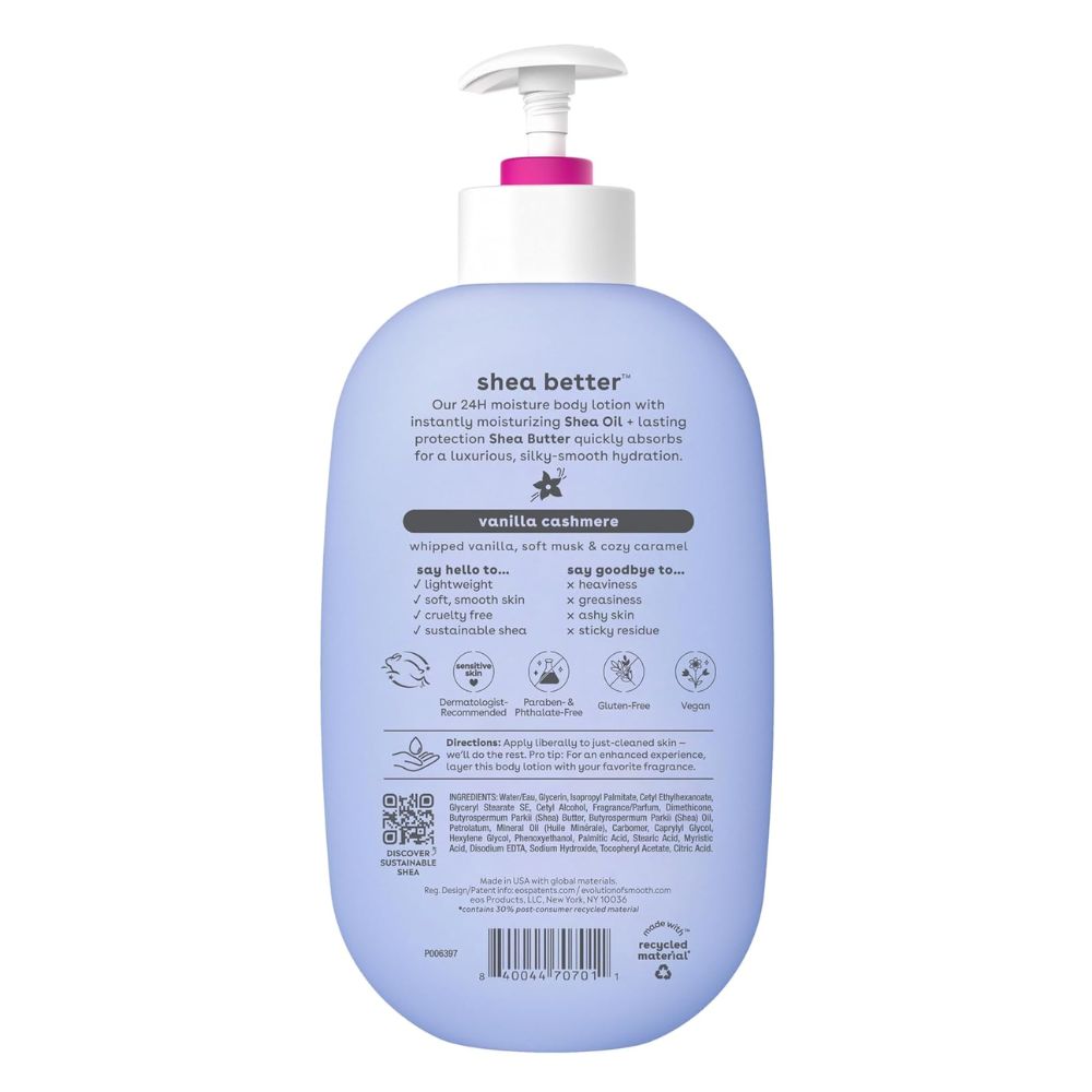 eos Shea Better Body Lotion- Vanilla Cashmere, 24-Hour Moisture Skin Care, Lightweight & Non-Greasy, Vegan, 16 fl oz