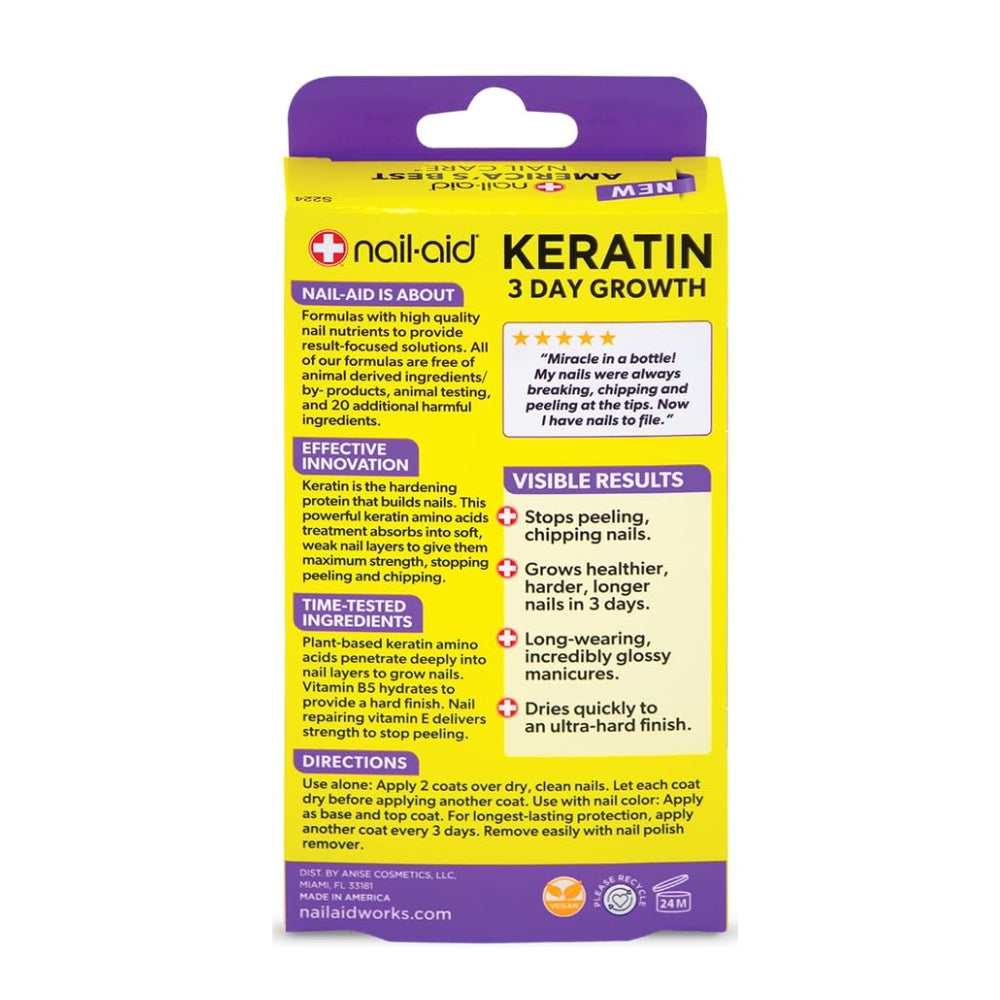 Nail-Aid Keratin 3 Day Growth Nail Treatment & Strengthener – Clear, 0.55 fl oz