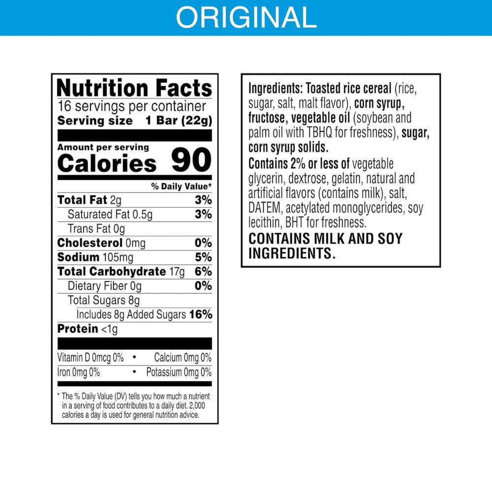 • Includes one 12.4 oz box with 16 Rice Krispies Treats Original Marshmallow Snack Bars, packaged for freshness and great taste.