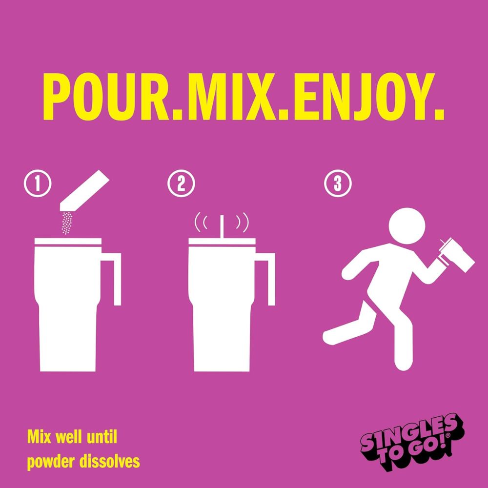 • Simply pour one stick into a 16.9 fl. oz. bottle or large glass of water, shake or stir, and enjoy.